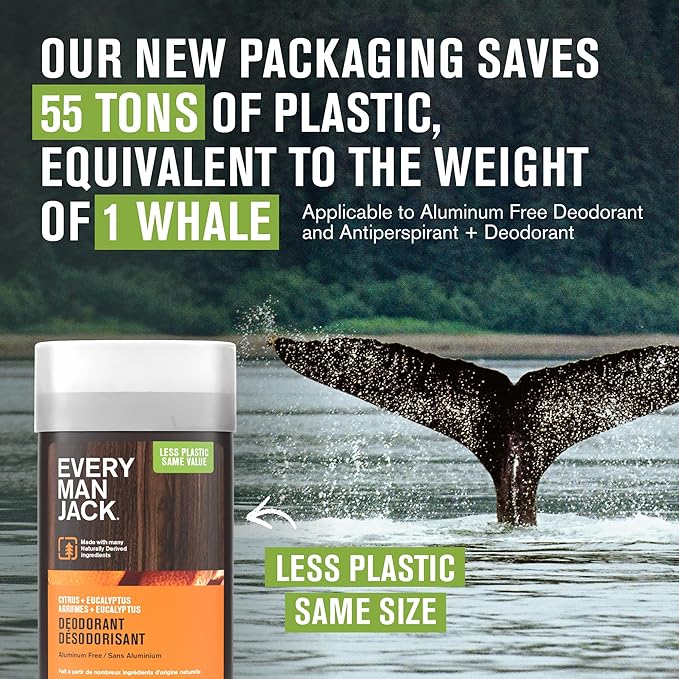 Every Man Jack Citrus + Eucalyptus Men’s Deodorant - Stay Fresh with Aluminum Free Deodorant For all Skin Types - Odor Crushing, Long Lasting, with Naturally Derived Ingredients - 3oz (2 Pack)