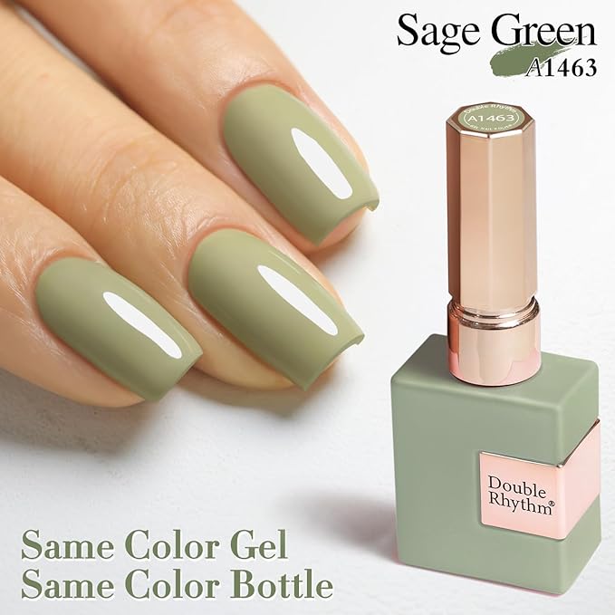 Double Rhythm 15ML Gel Polish Pure Sheer Same Color Same Bottle Soak Off Gel Polish Art Manicure Salon DIY at Home for Women (Sage Green-A1463)