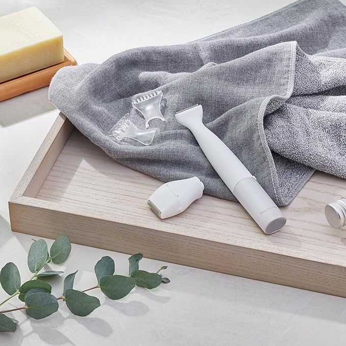 Panasonic Bikini Trimmer and Shaver for Women with 4 Attachments for Fast Easy Gentle Grooming in Intimate Areas, Use Wet/Dry, Electric Razor, Battery-Operated – ES-WV62-H (White/Silver)