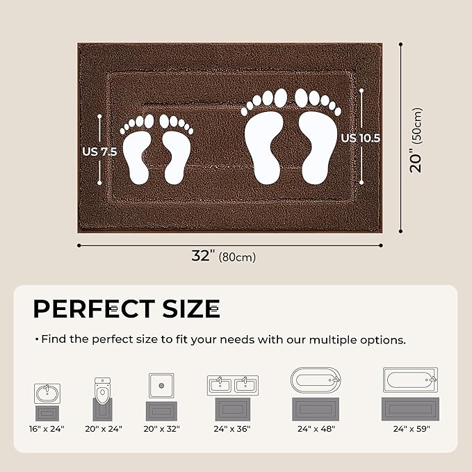 GRANNY SAYS Bathroom Rugs Non Slip 32" x 20", Bath Mats for Bathroom, Super Soft and Water Absorbent, Microfiber Washable Bath Rugs for Floor, Tub and Shower, Brown