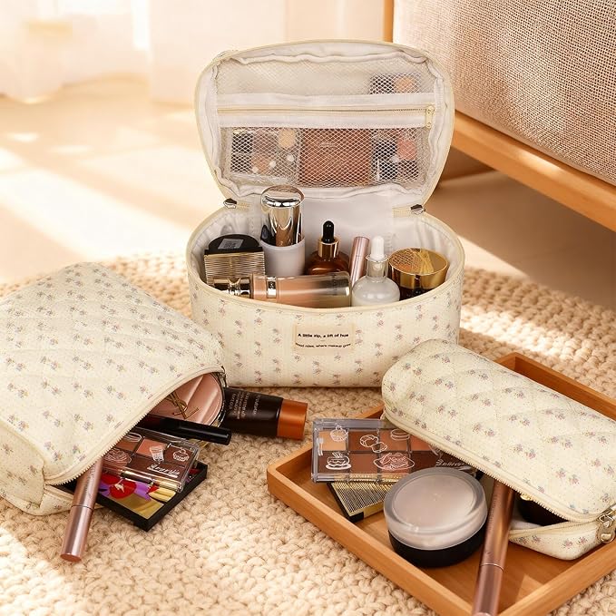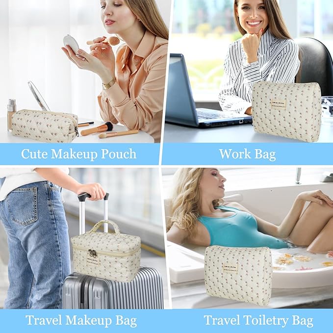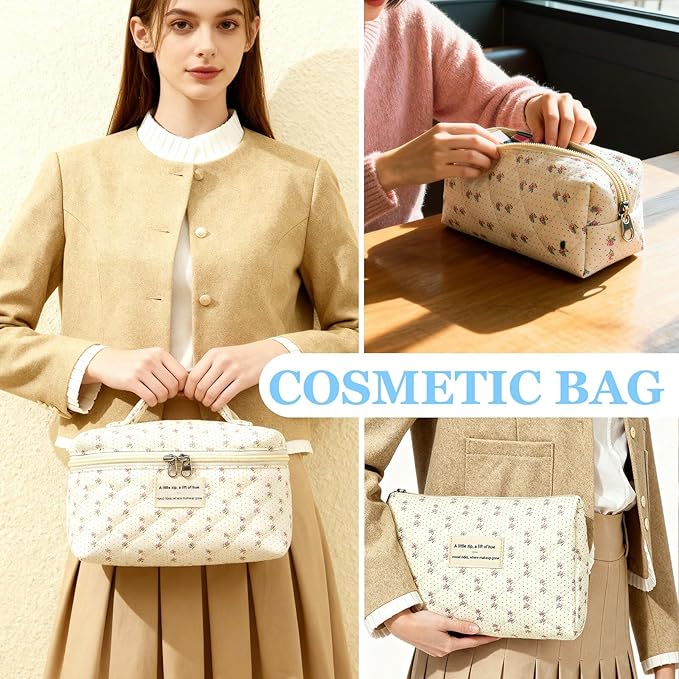 - ✅【 Multi Purpose】The cotton quilted makeup bag can be used as daily handbags, cosmetics and skincare organizing bags, storage bags, and travel toiletry bags. The initial makeup storage bag can be used during travel because it is lightweight and does not take up too much space in the suitcase.