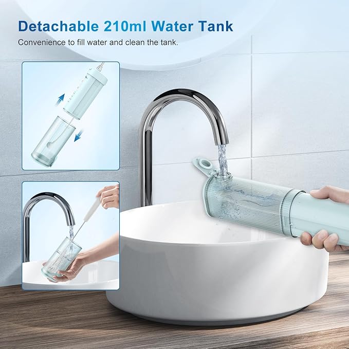 Mini Portable Water Flosser Oral Irrigator Water Teeth Cleaner Pick, Telescopic Water Tank, 4 Modes & IPX7 Waterproof, Home & Travel Water Flossers for Teeth, Braces Bridges Care. (Pearl Blue)
