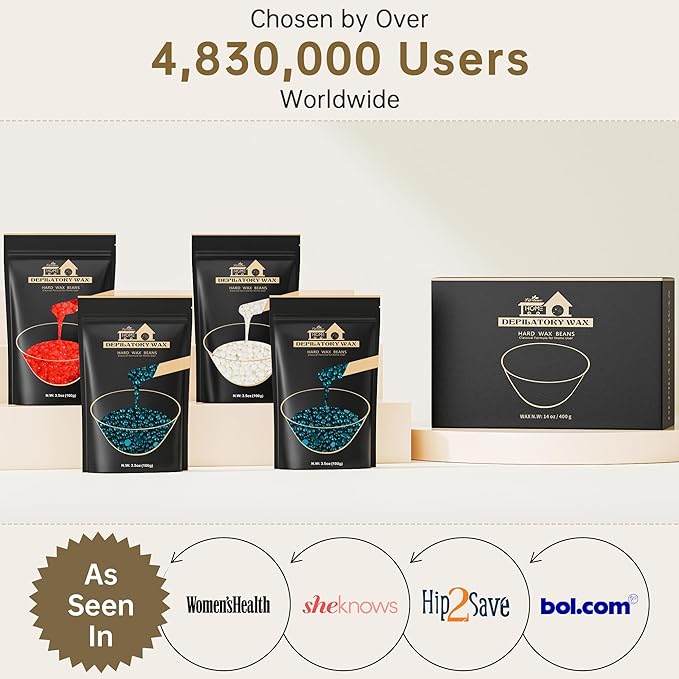 - Gentle on Skin, Tough on Hair: Experience the comfort of our HRIP-certified wax beads for hair removal. Formulated with materials, our beads are suitable for all skin types, including sensitive skin. Hard wax for hair removal melts at low temperatures for a gentle, non-irritating waxing experience, effectively removing fine to coarse hair without harming your skin. Perfect for everybody.