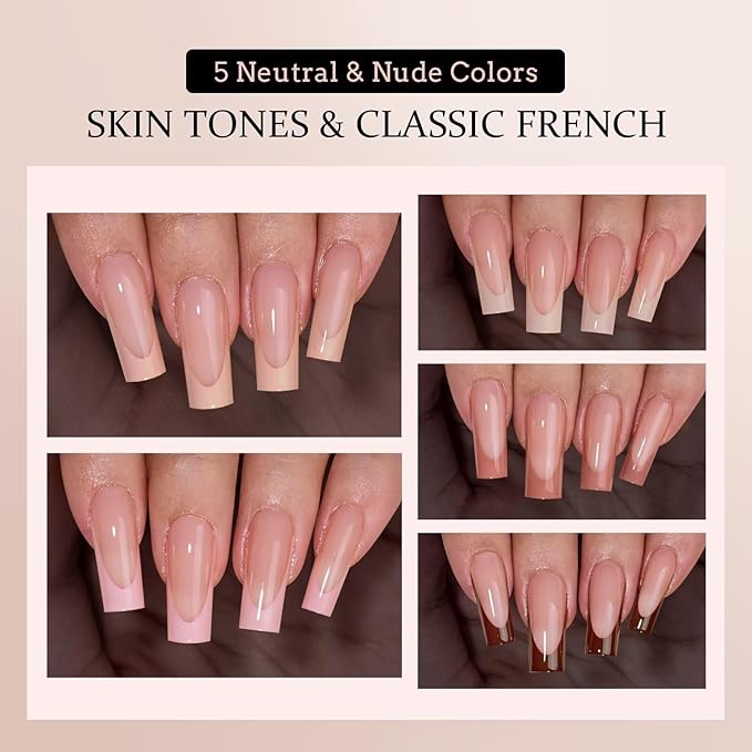BTArtboxnails XCOATTIPS Nails Press Ons - Skin Tones Press on Nails Square, Long Soft Gel Nail Tips with Nail Gel, French Protecting Duo, Nail Lamp, All in One Fake Nail Extension Kit