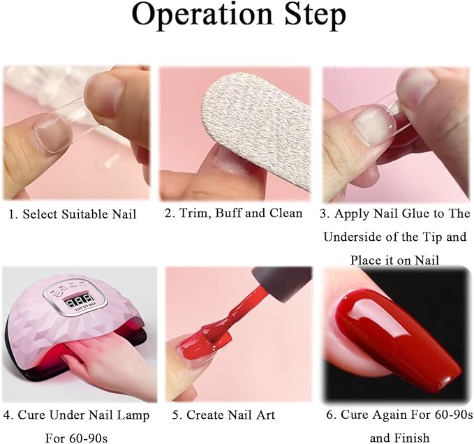 - What You Get: 1x Premium cost-effective UV LED Nail Lamp, 1x adapter, 1x user manual and 24pcs false nails.
