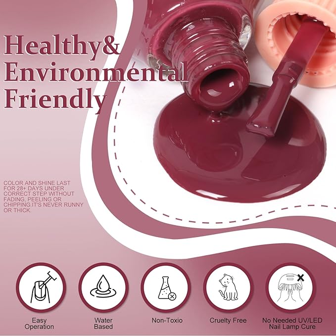 - Easy to Use: Our ideal color doesn't require UV nail lamp curing and is easy to apply, even for beginners. You can achieve a professional-looking manicure at home without any hassle.