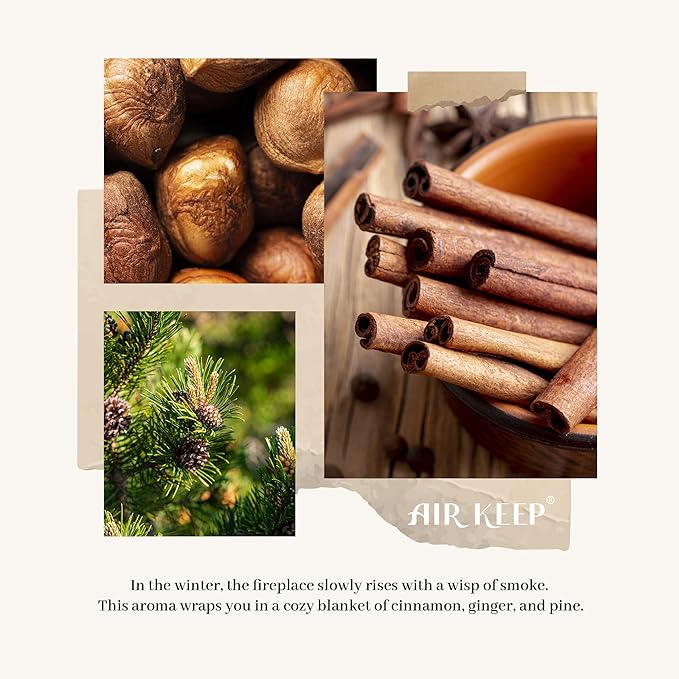 - Scent:In the winter, the fireplace slowly rises with a wisp of smoke. This aroma wraps you in a cozy blanket of cinnamon, ginger, and pine