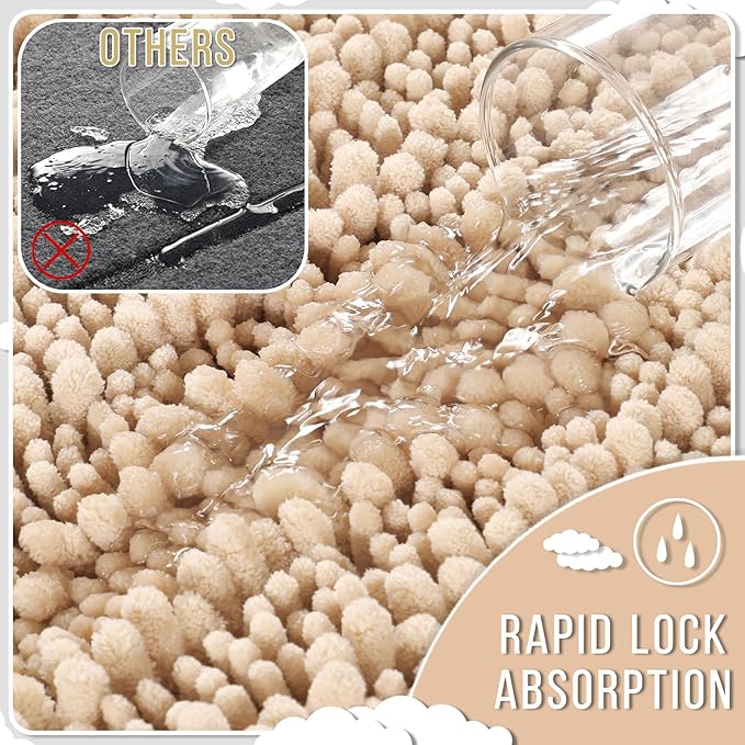 Yimobra Bathroom Rugs Non Slip Washable 32x20 Inch - Ultra Soft Absorbent Chenille Bath Mat, Quick Dry Shaggy Floor Carpet for Tub Shower, Light Brown Home Decor Accessories