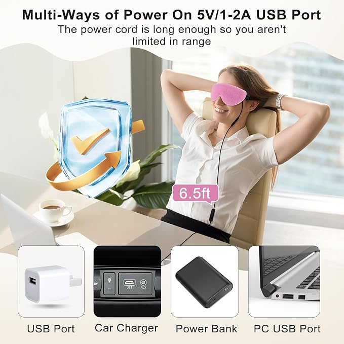 - SOFT TOUCH TO THE EYES: The dry eye mask contains reusable heatable natural flaxseed padding that matches our orbital bones perfectly, the perfect fit better conducts heat to the eye skin and penetrates heat deeper into the subcutaneous tissues, making it more effective in promoting blood circulation around the eyes. The warm compress for eyes comes with a 6.5-foot USB power cord. This cord is compatible with most 5V / 1-2A USB outlets, including wall chargers, laptops, power banks, and so on.