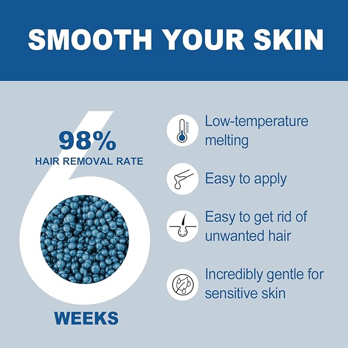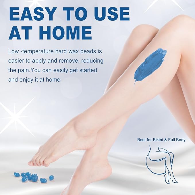 - Professional Salon Grade Results and Easy to use: Suitable for both at-home and commercial professional salon use. Hard wax beads for hair removalmanage excessive hair from hirsutism by quickly removing hair from large areas (like face, chest, or back). Experience home waxing beads for hair removal without going to a professional salon.Wax for private area for women heat up quickly, easy to use and remove. No strips needed, even beginners can quickly master the efficient and convenient hair removal experience, and achieve smooth skin results for weeks.