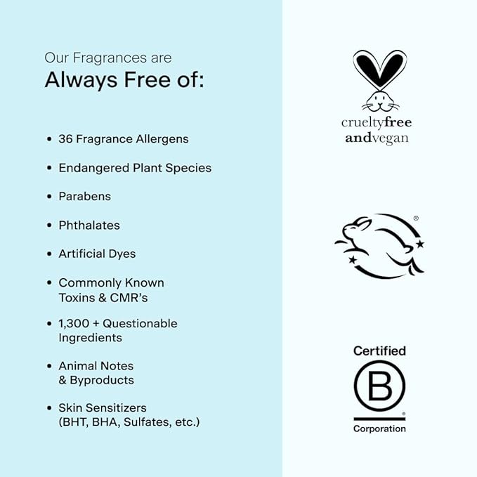 - Responsible Fine Fragrance: We go above and beyond the strictest global regulatory standards to ensure your skin's safety. Our ingredient policy was developed with a toxicologist to intentionally omit harmful ingredients.