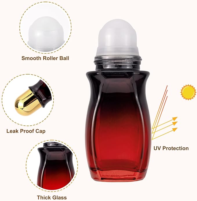 - UV Protection: Made from thick, sturdy black and red gradient glass, these bottles provide UV protection for your deodorant, essential oils and perfumes from sunlight
