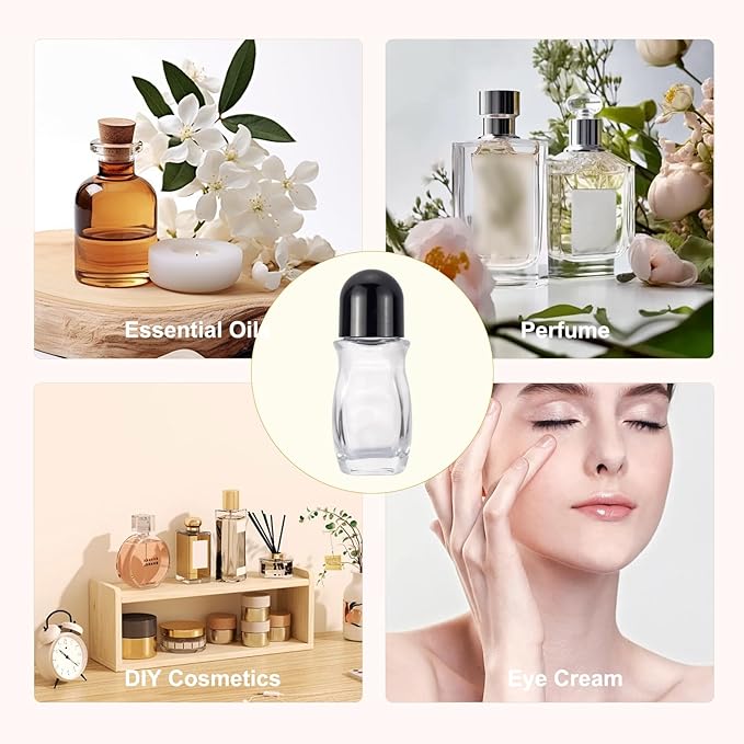 - Sturdy Clear Glass with Smooth Plastic Rollerball: Clear glass roller bottles allow you to see your contents clearly, with a smooth-rolling plastic rollerball applicator for effortless and controlled application onto your skin
