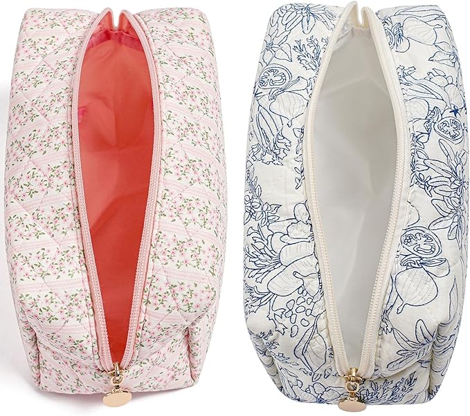 - ๐ Multi-Purpose - The cotton quilted makeup bag can be used as daily handbags, cosmetics and skincare organizing bags, storage bags, and travel toiletry bags. The cute makeup storage bag can be used during travel because it is lightweight and does not take up too much space in the suitcase.