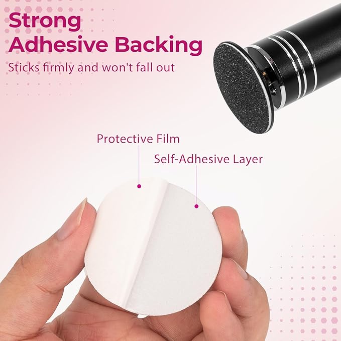 - 【SIMPLE USAGE:】The material of our replaceable sandpaper discs are black silicon carbide and self-adhesive. krofaue sandpaper pad discs have adhesive backing. You just peel off the sticker on the back and gently press on the disc of the foot grinder to use it. Our sandpaper refill discs are easy to use and not easy to fall off