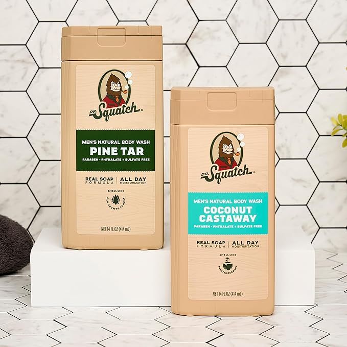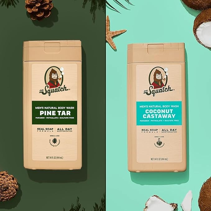 Dr. Squatch NEW Body Wash for Men with Nourishing, Natural Ingredients | No Paraben, Phthalate, Sulfate | All Day Moisture | Long Lasting Scent | Pine Tar & Coconut Castaway (14 oz, 2-Pack)