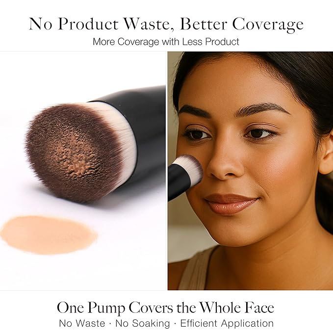 - ONE PUMP, FULL FACE — NO PRODUCT WASTE – Dense fibers stay on the surface instead of soaking up foundation. You’ll get full coverage with less product — no waste, no soaking, efficient application