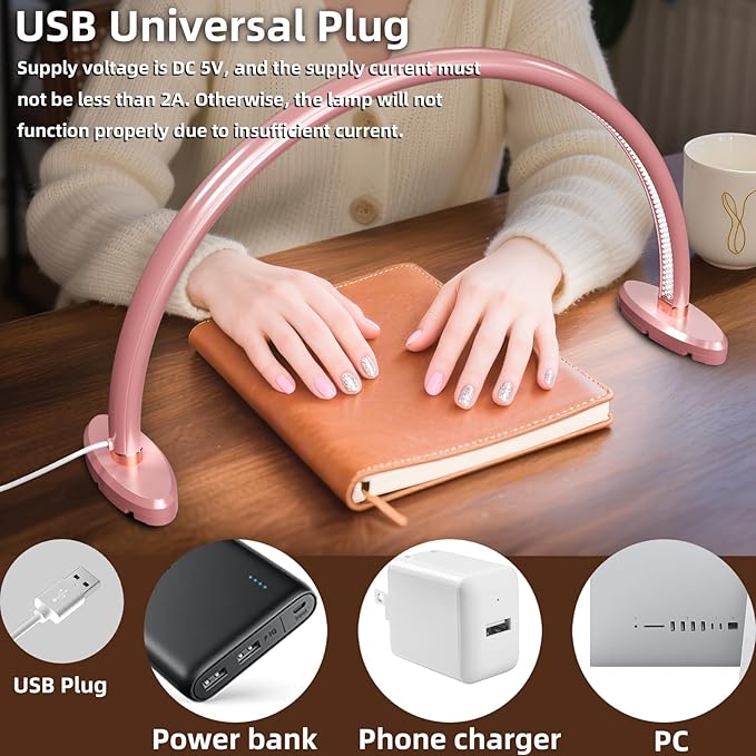 - Easy to Install and Use: The nail desk light is easy to install without any additional tools and tedious steps. Just snap the legs into the anti-slip base and go, the base has a foldable bracket. When opened, it can increase the height of the lamp body and expand the operating space USB powered interface, can use 5v 2A power adapter power supply or other USB interface.Note that the power supply current must not be less than 2A