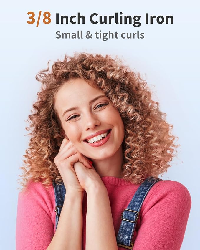 - Achieve Salon-Grade Curls: The 3/8 inch curling iron help you achieve tight curls, corkscrew curls while offering endless definition & volume. Larger barrels will create loose, full, romantic curls & waves and thinner barrels to make tight, bouncy coils.