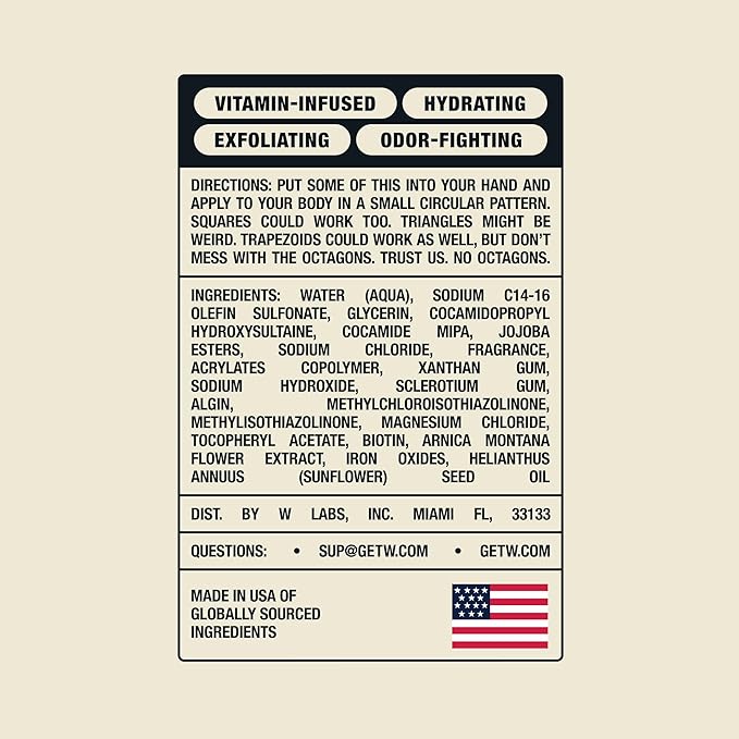 W By Jake Paul Exfoliating Body Wash for Men, Vitamin-Infused, Hydrating Shower Gel, Fresh Ice, 18 fl oz