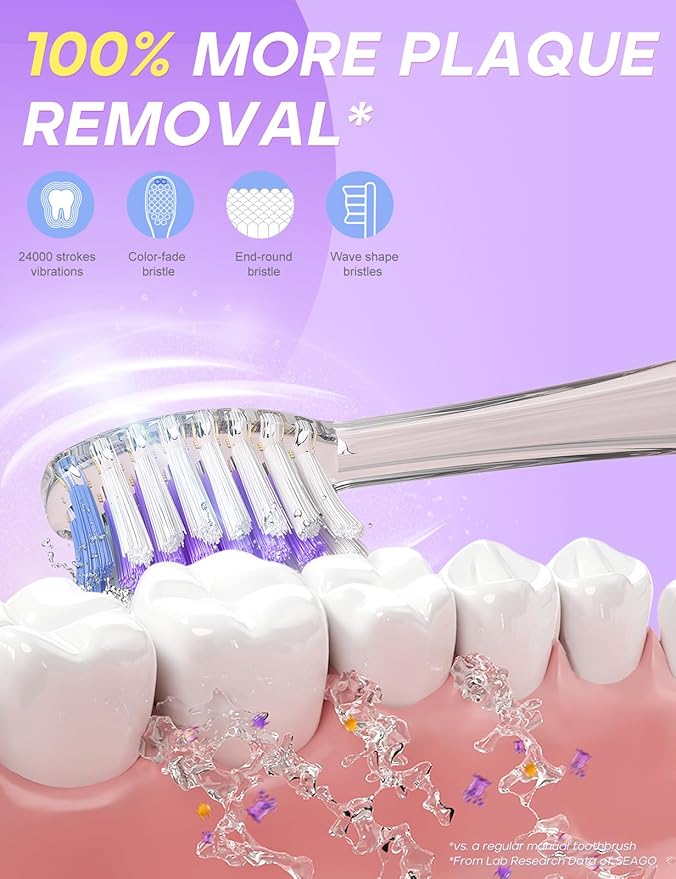 - Safe Materials and Timer: The SEAGO kids' sonic toothbrush handles are made of food-grade ABS and TPE, and the toothbrush heads feature soft bristles to safeguard children's tooth enamel. This kids' toothbrush includes a timer to help children achieve the dentist-recommended brushing duration