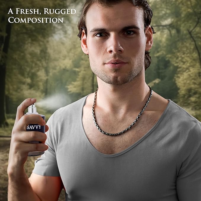 Savvy for Men Eau De Parfum - Sophisticated Male Fragrance Composition of bergamot, Pepper, Lavender, Star Anise & Nutmeg - Base of Peppery & Vanilla - Go-To Daily Scent - Elegant 100ml Bottle