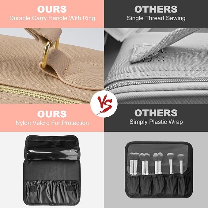 - ๐ใFlexible and Large Storage Spaceใ:Reasonable design makes the makeup bag easy to carry, not only can you store cosmetics and makeup tools, but also jewelry, electronic accessories, camera accessories, toiletries, etc. Removable EVA sponge divider Can DIY the space you need to meet your needs. Can accommodate a variety of sizes of cosmetics and makeup brushes. Which can well protect the cosmetics inside, ensure no breakage or leakage, and also keep them clean and dry.