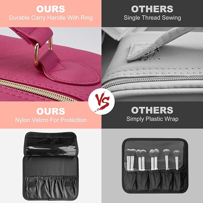 - ๐ใFlexible and Large Storage Spaceใ:Reasonable design makes the makeup bag easy to carry, not only can you store cosmetics and makeup tools, but also jewelry, electronic accessories, camera accessories, toiletries, etc. Removable EVA sponge divider Can DIY the space you need to meet your needs. Can accommodate a variety of sizes of cosmetics and makeup brushes. Which can well protect the cosmetics inside, ensure no breakage or leakage, and also keep them clean and dry.