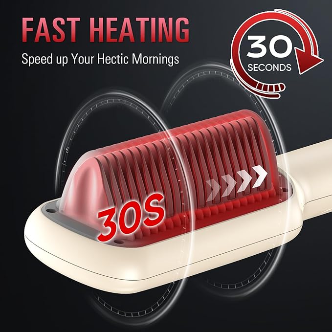 - ANTI-SCALD DESIGN - with insulated comb teeth on the outside of the heating comb to prevent burns. Easily straighten your hair without the need for heat-protecting gloves. Moreover, it automatically shuts off after 30 minutes of inactivity to prevent accidental burns.