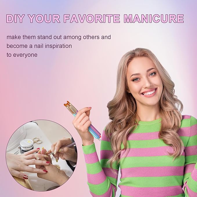 Artdone Nail Dotting Tools Double-ended Nail Art Brushes Kit Nail Art Gel Polish Liner Brushes Design Pen For Nail Drawing And Nail Paint Brushes Small Detail Brushes