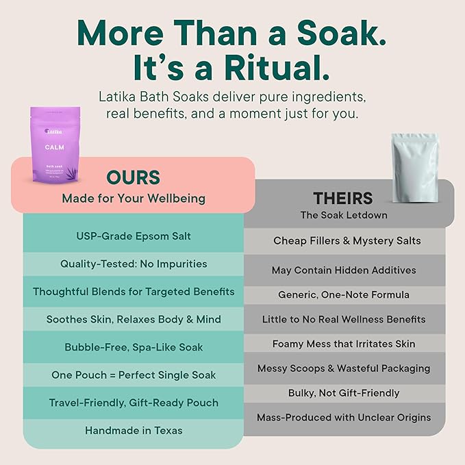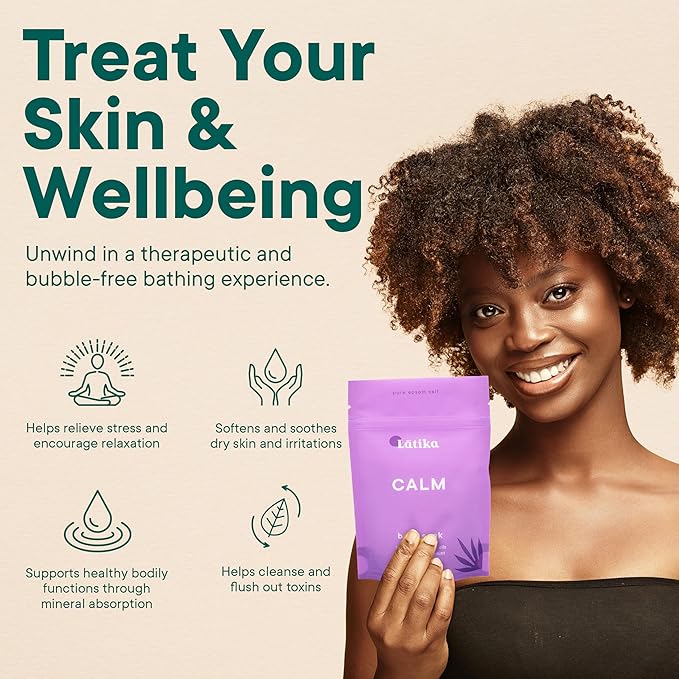 Latika Soaks Set of 3 - Calm Bath Soaks with Lavender & Peppermint, Moisturizing Epsom Salt Soak for Stress Relief, Relaxation, and Skin Nourishment, at-Home Spa Retreat Gift