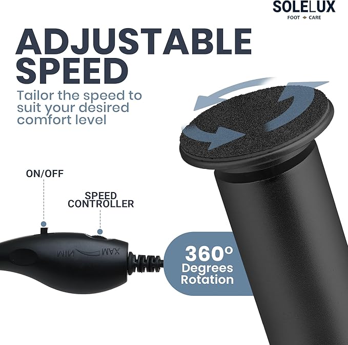 - Adjustable Speed Settings: Customize your foot care routine with adjustable speeds. This feature allows safe and effective exfoliation, helping you find the most comfortable and efficient setting for removing calluses and dead skin