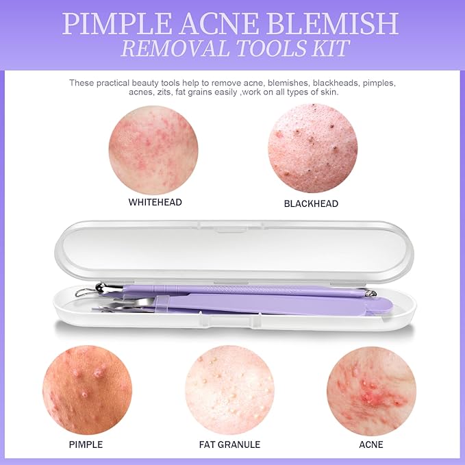 - Professional Pimple Popper Tool Kit: This pimple extractor set includes essential tools for easily removing blackheads, whiteheads, pimples, and acne, as well as shaping eyebrows with precision and comfort
