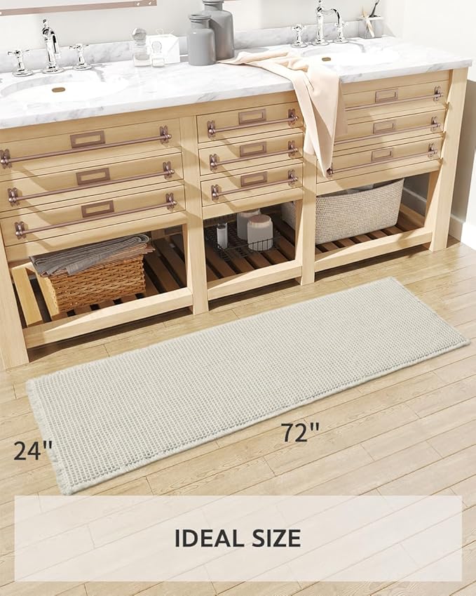 tchdio Waffle Bath Mat-Runner Rug, Super Absorbent Non Slip Bath Mats for Bathroom Machine Washable Long Rugs with Tassels, Bath Rugs for Bathroom Floor Beside Tub, 2' x 6'(24" x 72")