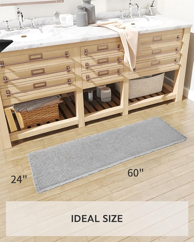 tchdio Waffle Bath Mat-Runner Rug, Super Absorbent Non Slip Bath Mats for Bathroom Machine Washable Long Rugs with Tassels, Bath Rugs for Bathroom Floor Beside Tub, 2' x 4'(24" x 48")