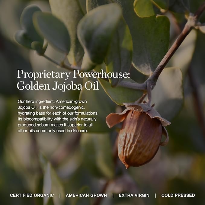 - Hydrating Jojoba Oil: Our key ingredient, American-grown Jojoba Oil, serves as a non-comedogenic, deeply nourishing base that aligns with the skin’s natural composition for optimal hydration.