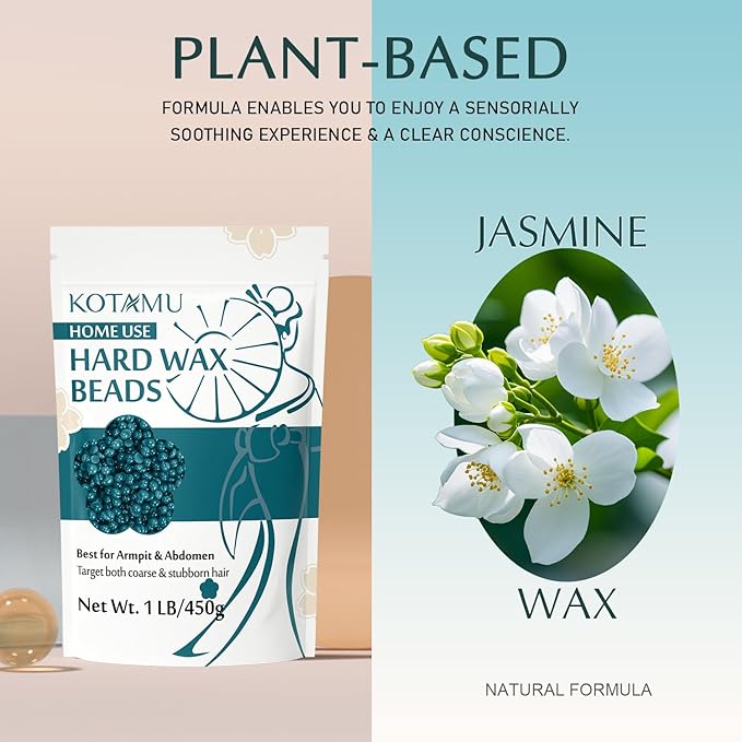 KOTAMU Hard Wax Beads for Hair Removal, 1lb Jasmine Wax Beads for Sensitive Skin Armpit Abdomen Face Leg Full Body Waxing Beans for Women Men at Home Wax Refill (Coarse & Stubborn Hair Formula)