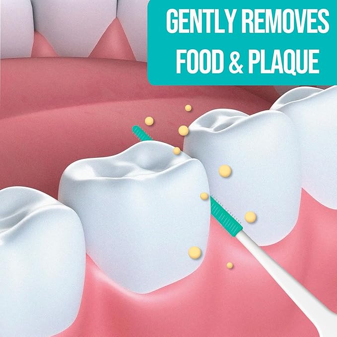 - FLEXIBLE BETWEEN TEETH CLEANERS: Soft flexible pick sild between teeth and remove the food debris and plaque. A great choice if you have narrow interdental spaces, braces, bridges, or orthodontic appliances.