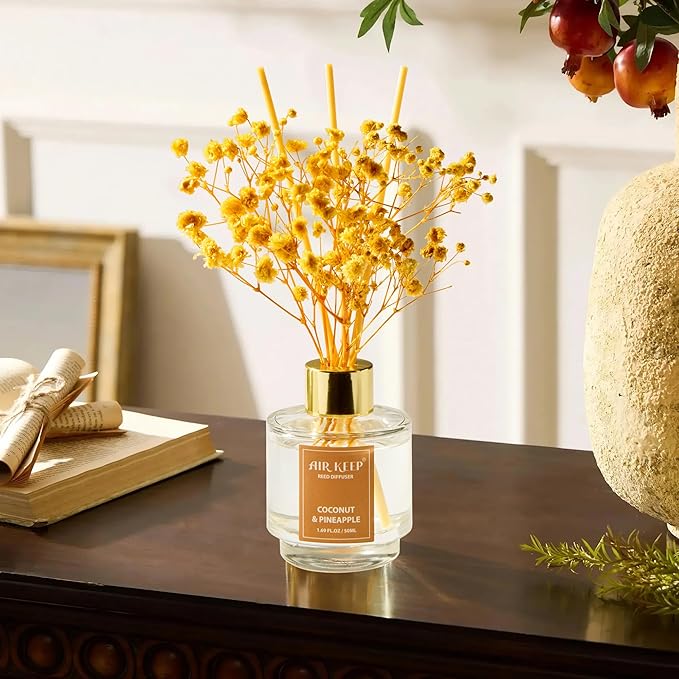 - Includes:3*fragrance diffuser glass bottle with 1.69 fl oz(50ml) essential oils fragrance, 3 sets of preserved flowers, 24* Reed diffuser sticks, 1* Exquisite gift box