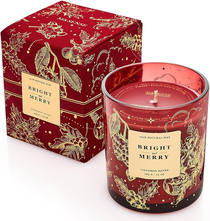 M&SENSE Holiday Scented Candle Gift for Women and Men - Cinnamon Scent, 10 oz Soy Wax, Birthday,Holiday,Christmas,New Year Gift