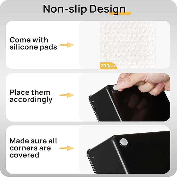 - 【Non-Slip and Durable】Extra 200pcs silicone pads are included, just stick them on the bottom of the plastic trays for non-slip. Organizing with drawer storage allows you to quickly find what you need, without digging around or making a mess, help you get a neat lifestyle.