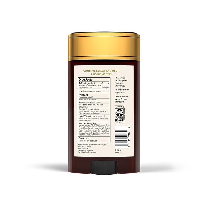 Cremo Italian Bergamot Antiperspirant & Deodorant for Men, 48-hour Sweat and Odor Protection, 2.65oz