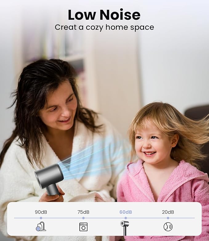 - [Advanced Ionic Technology] The hair blow dryer emits over 500 million negative ions to reduce static and lock in moisture, The diffuser hair dryer leaving your hair softer, smoother, and shinier. Its intelligent temperature control(The temperature control function means the device will cease heating upon reaching a predetermined temperature threshold, designed to prevent burn injuries.) chip measures air temperature over 500 times per second to prevent overheating and protect your hair.