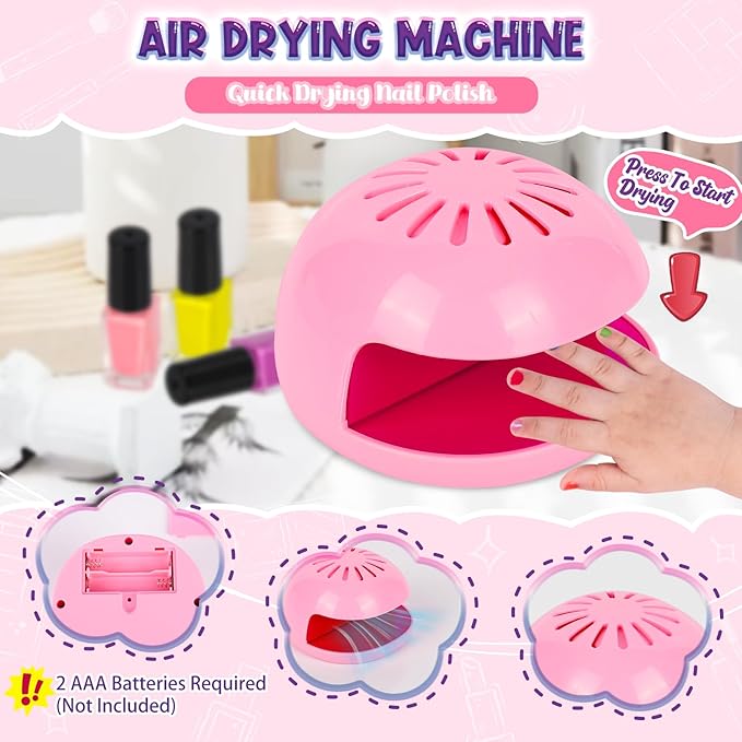 - KIDS NAIL ART TOOLS WITH NAIL DRYER: EULRGAUS nail design kit includes a nail dryer for kids, it's safe and no VU light, kids can operate it easily, simply place your hand in the nail dryer and press down to begin drying, the nail polish will dry quickly in 15 seconds. (Note: Requires 2 AAA batteries, not included)