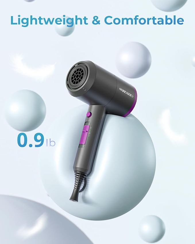 SHRATE Lightweight Ionic Hair Dryer with Diffuser - Powerful 1800W Blow Dryer for Fast Drying - Professional Low Noise Mini Hair Dryer for Travel, Gifts, Hair Styling