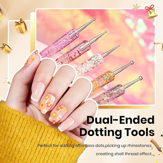 - Dual-Ended Dot Brushes: The dot brushes in the set come in 5 different sizes, allowing you to choose freely and easily recreate the popular nail art styles you love. Whether it's small, delicate dots or elegant flower patterns, they can all be easily achieved with our dot brushes, making your nail art works more diverse and personalized.