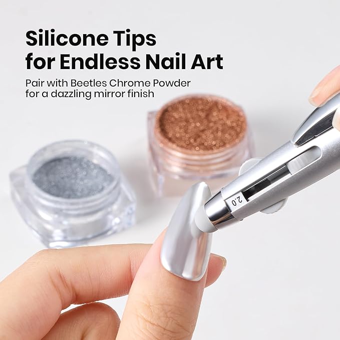- Soft Silicone Tips for Enhanced Creativity: The soft and flexible silicone tip seamlessly with Beetles Chrome Nail Powder for dazzling mirror finishes. Soft material for smooth blending, use for blending gradients, adding blush tones, securing stickers or decals, and transferring foils