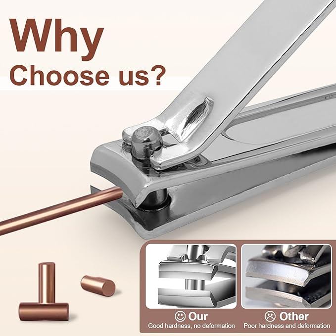 - 【Good Qulity Material】: This nail set is made of high-quality stainless steel, after secondary processing, it is strong and durable and can trim thick nails. Rust-proof and harmless to the human body. The handle of the nail clipper adopts a vertical grain texture non-slip design. You don't have to worry about the smooth stainless steel nail clippers slipping out of your hands during use.