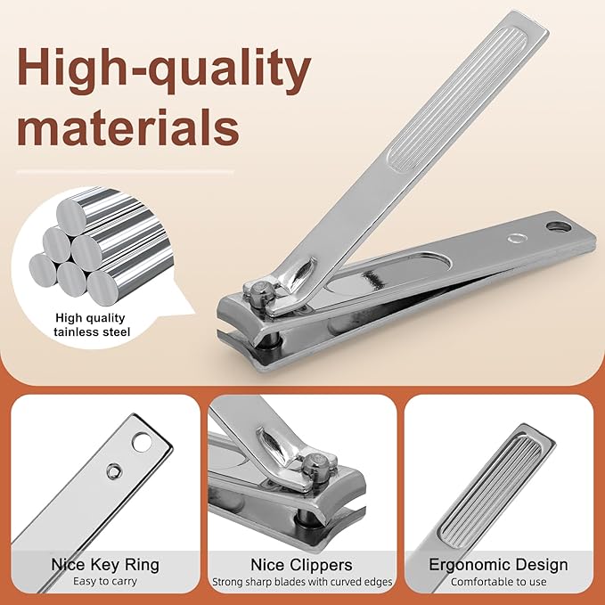 - 【Good Qulity Material】: This nail set is made of high-quality stainless steel, after secondary processing, it is strong and durable and can trim thick nails. Rust-proof and harmless to the human body. The handle of the nail clipper adopts a vertical grain texture non-slip design. You don't have to worry about the smooth stainless steel nail clippers slipping out of your hands during use.