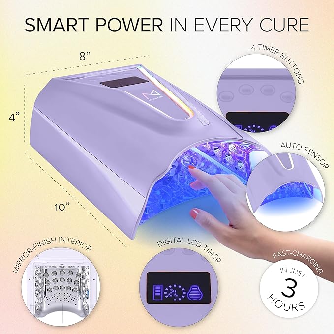 M - Crystal Cure 128W UV Nail Lamp - Fast Curing Nail Light with 45 Powerful 365nm+405nm LEDs - Cordless, Rechargeable, Auto Sensor - UV Light for Gel Nails for Manicures & Pedicures (Violet)